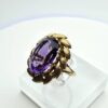 Oval amethyst gold ring surrounded by feathers