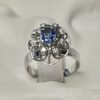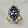 Blue sapphire ring with 5 triangle stones and 18 diamonds