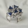 Blue sapphire ring with 1+6+4 stones and 8 diamonds