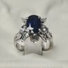 Blue sapphire ring with 1 stones and 6 square diamonds