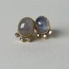 Oval aquamarine earrings with a unique setting