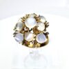 Round moonstone gold ring surrounded by leaves