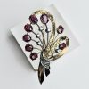 Sunflower-design vintage ruby brooch